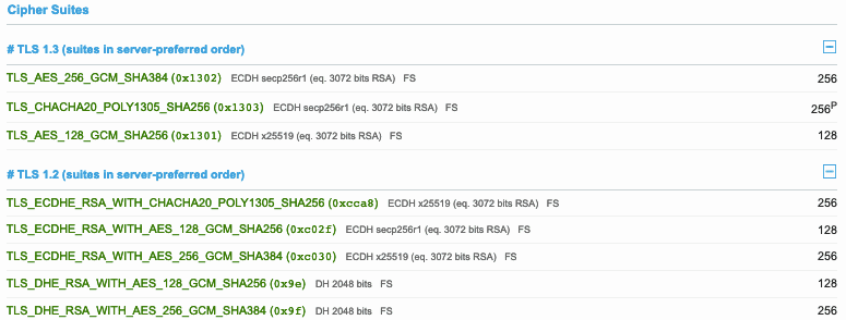 On constate en particulier que le format des suites cryptographiques a changé avec TLS 1.3.