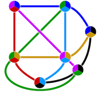 Par exemple, dans le cas du corps fini à deux éléments , le plan projectif (plan de Fano) peut se représenter ainsi :