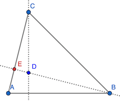 L’énoncé suivant, qui se trouve dans la documentation d’AlphaGeometry, exprime le fait que les trois hauteurs d’un triangle ABC se coupent en un point , l’orthocentre